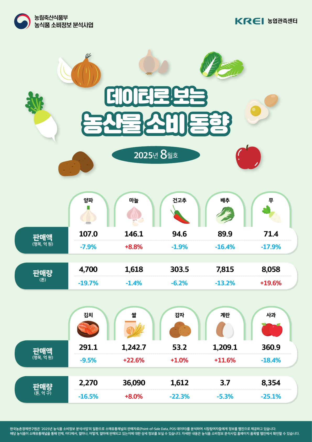2025년 제5호-가구 소비동향. 데이터로 보는 농산물 소비 동향(POS): 8월호