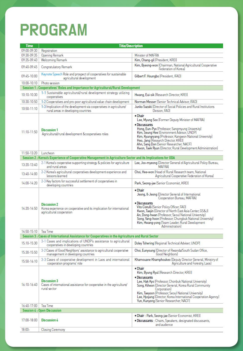 This forum will be filled with a variety of trends in and strategies of international agricultural development cooperation such as the effective implementation of agricultural and rural development strategies through cooperatives and their performance management methods.