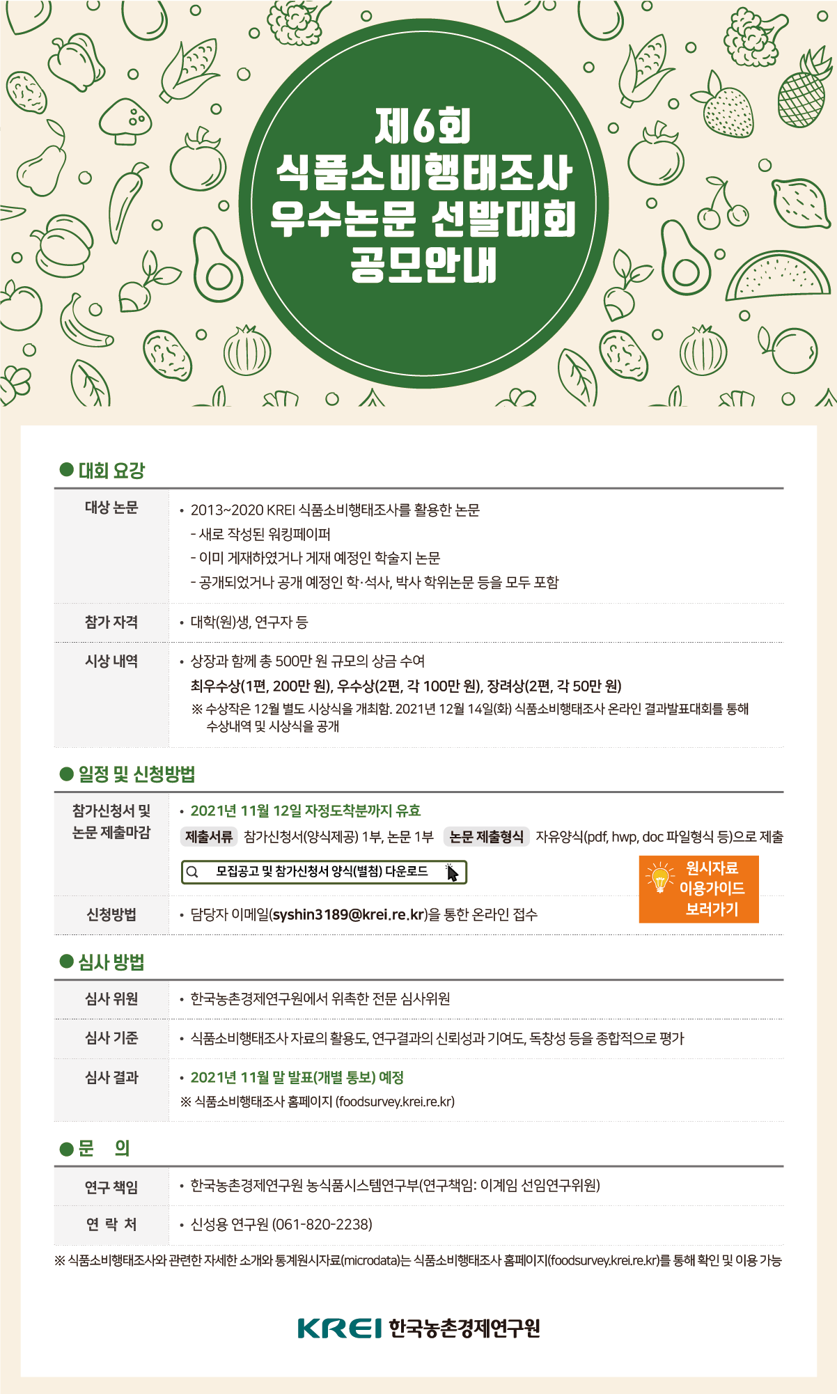 제6회 식품소비행태조사 활용 우수논문 선발대회 공고 요청