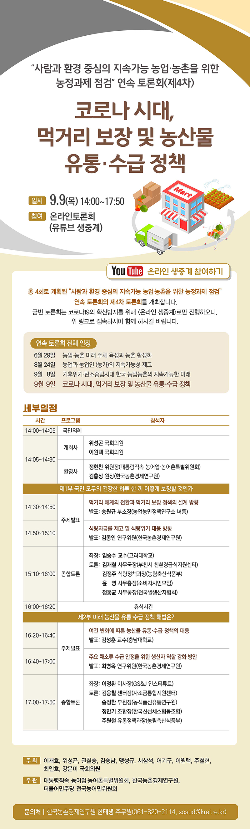 코로나 시대, 먹거리 보장 및 농산물 유통수급 정책 토론회 안내