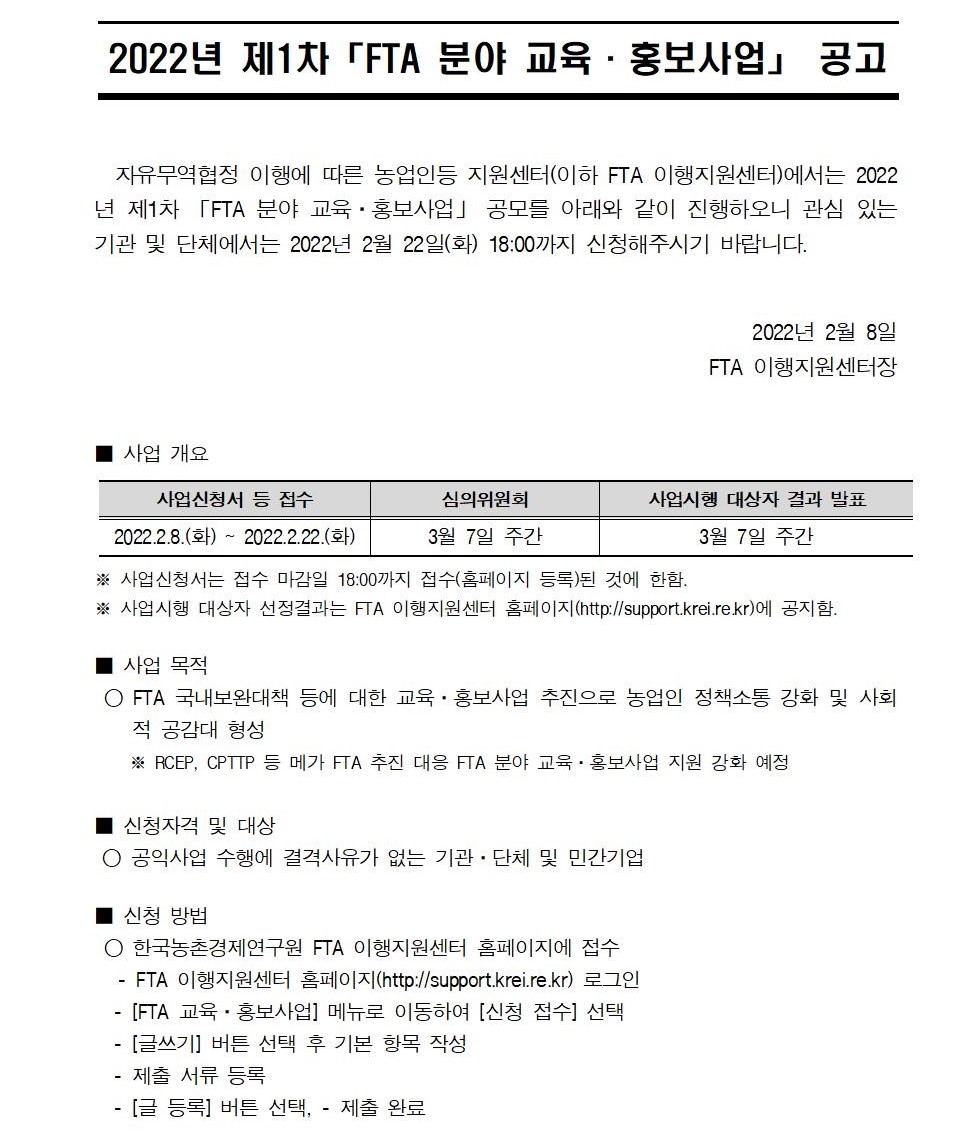 2022년 제1차 「FTA 분야 교육·홍보사업」 공모