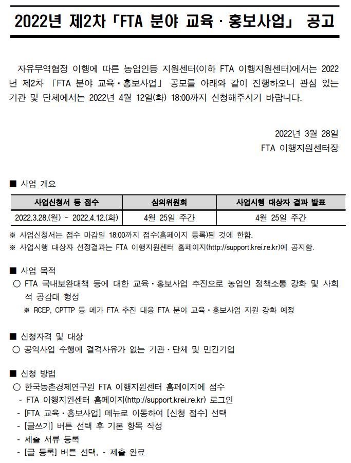 2022년 제2차 「FTA 분야 교육·홍보사업」 공모