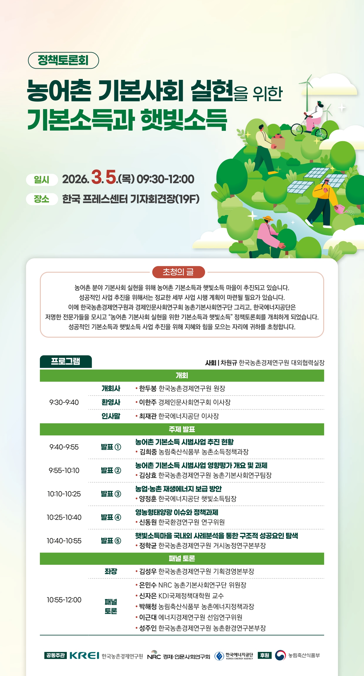 농어촌 기본사회 실현을 위한 기본소득과 햇빛소득 정책토론회
