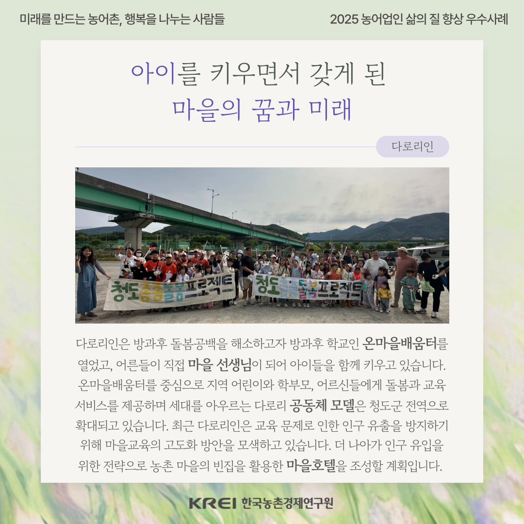 * 본 사례는 2025 농어업인 삶의 질 향상 우수사례집에서 소개한 내용입니다.