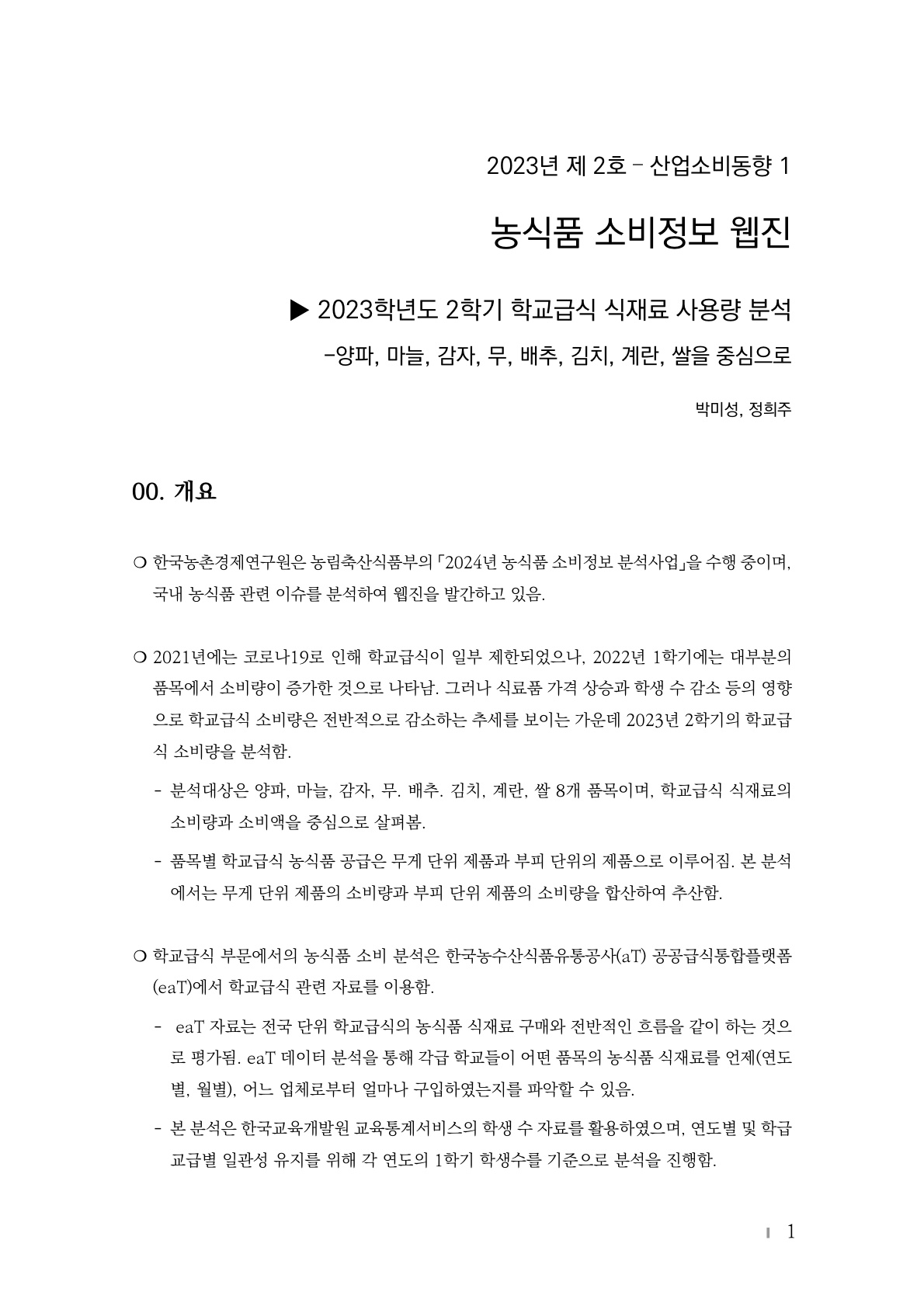 2024년 제1호-산업 소비동향 2. 2023학년도 2학기 학교급식 식재료 사용량 분석