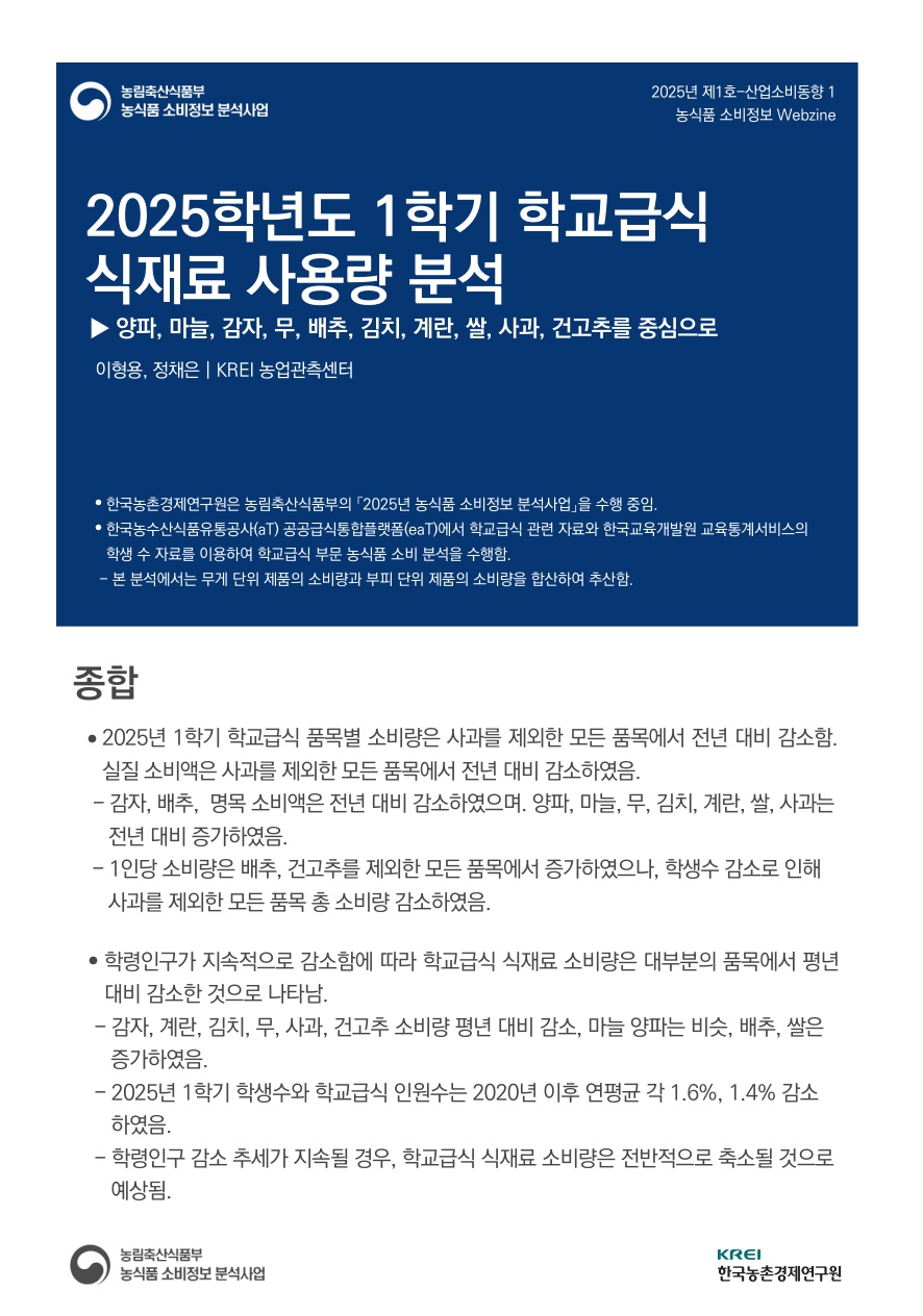 2025년 제1호-산업소비동향 1. 2025학년도 1학기 학교급식 식재료 사용량 분석