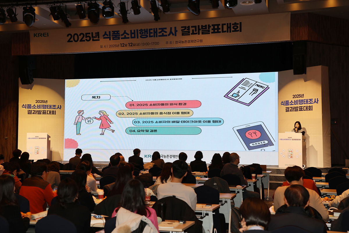 □ 한국농촌경제연구원(원장 한두봉, 이하 KREI)은 12월 12일 서울 양재 aT센터에서 ‘2025년 식품소비행태조사 결과발표대회’를 개최했다.