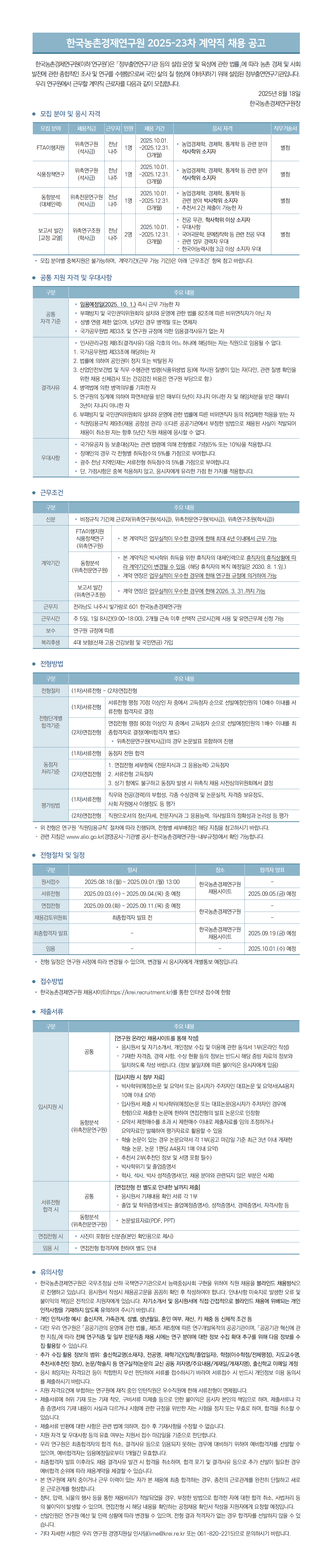 - 한국농촌경제연구원 2025-24차 계약직 채용 공고